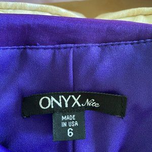 Women's Onyx One Shoulder Rouched Short Dress Size 6. Color : Purple. Style : Length above the knee, Side Zipper. Cocktail dress date night valentines love evening party fun. Minimal Discoloration on bottom portion of dress - Pic attached. Smoke/Pet free home, ships asap, Thank you for looking.