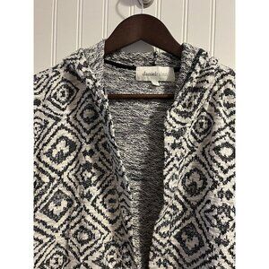 Women’s Open Cardigan By Daniel Rainn Size 1X Long Back And White Geometric