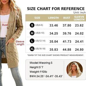 - Material: Made of soft and lightweight knit fabric, this long sweater for women is the perfect addition to your fall and winter wardrobe. Stay cozy and stylish with our womens sweaters cardigan. S=US 4-6, M=US 8-10, L=US 12-14, XL=US 16.