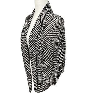 Women’s Cocoon Open Front Cardigan Size M Oversized Geometric Print Business 90% Nylon, 10% Spandex Machine Wash