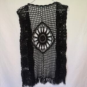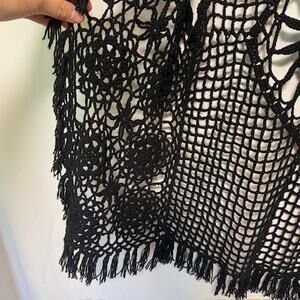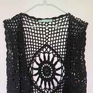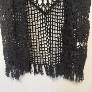 Womens Open Knit Crochet Open Front Cardigan L Festival Whimsigoth Fringe Boho