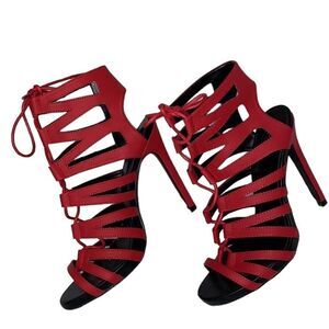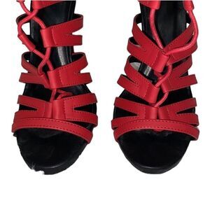 Women's Open Toe Strappy Red Sandals, Reflects minor storage wear, Please review Photos. Approx Heel Height 4.5", NWOT