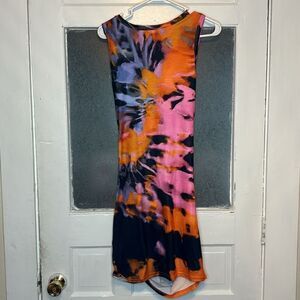 Women’s Orange Black and Pink Tie Dye Twist Cut Out Mini Dress Size Medium