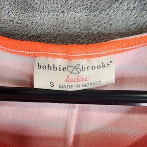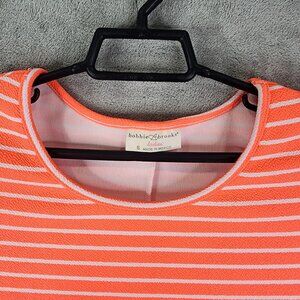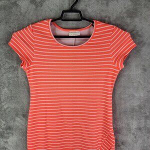 Women's Orange Bobbie Brooks Ladies Dress White Striped Short Sleeve Size S