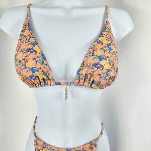 Women's Orange Floral Print Triangle Top Cheeky String Bikini Set Size M NWOT