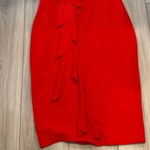 Womens Orange High Neck Ruffle Dress Size: UK 14 Color: Red/Orange NEW