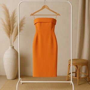 Women’s Orange Idem Ditto Strapless Fitted Midi Dress W/ Back Zipper & Slit. New without tags and never been worn. Just sat in my closet. No flaws or signs of wear. Women’s Size Large
