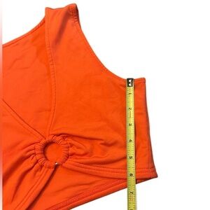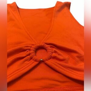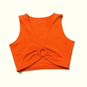 Women’s Orange Ring Gathered Crop Top V-Neck Sleeveless Small