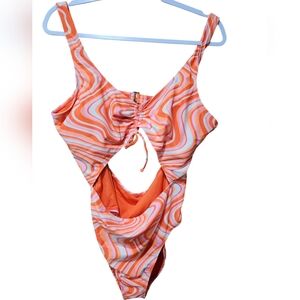 Women's Orange Swirl One-Piece Cut Out Swimsuit Size XXL