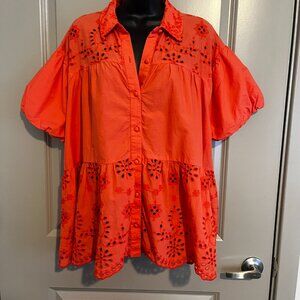 Women's Orange Short Sleeve Top. Size tag torn off but I believe this is a 2X - measurements in pics. Excellent pre-owned condition. Cato brand, 100% cotton.