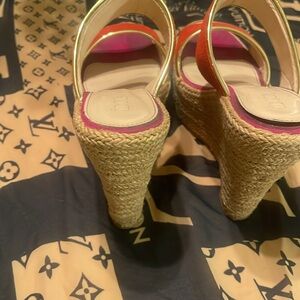 Elegant orange wedges with a chic design. Ideal for adding a pop of color to your outfit.
