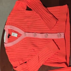 Women's Orange and Pink Cardigan Sweater Set