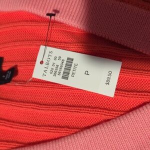 Brighten your wardrobe with this vibrant orange and pink cardigan sweater. Perfect for layering, this stylish piece adds a pop of color to any outfit. Tank is a Small petite and sweater a petite
