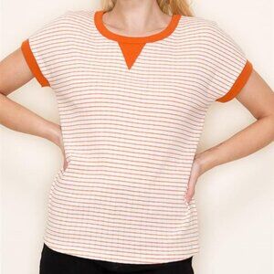 Women's Orange and White Stripe T-shirt Staccato Size XL