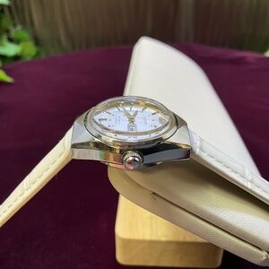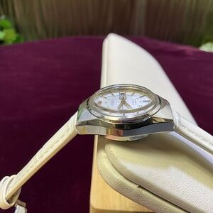 Pre owned, very good condition in and out with new white leather strap. 21 jewels ,water resistant, 26mm case , 11mm thickness, 12mm wide leather strap. Running and keep time very well.