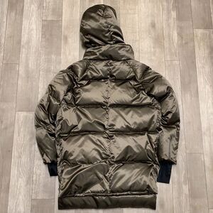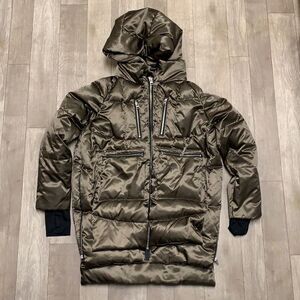 32” from top of shoulder to bottom. 23” armpit to armpit 19” armpit to end of sleeve. With inner lining with thumbholes. Army green color. Gently used.