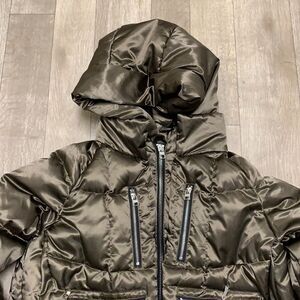 Womens Orolay Shiny Down Hooded Trench Puffer Jacket
