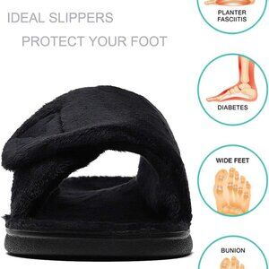 Features: These slip-on slippers feature a soft micro-terry coral fleece upper with an open-toe design for breathability and summer comfort. They have adjustable hook-and-loop straps for a perfect fit, whether you have narrow, wide, or high-instep feet. Designed with arch support, cushioned padding, and a deep heel cup, they deliver all-day support and relief, especially for foot issues like Plantar Fasciitis, Flat Feet, and Heel Pain. The biomechanically contoured, podiatrist-designed footbed helps distribute pressure evenly, providing therapeutic orthotic benefits.
