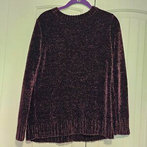 Women's Orvis Dark Purple Chenille Long Sleeve Knit Pullover Sweater Size Small