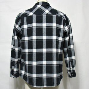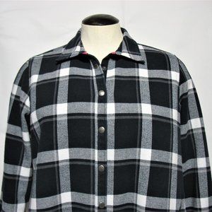 Women's Orvis Plaid Flannel Jacket Fleece Lining Button Snap Black White Sz 2XL