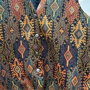 Womens Orvis Tribal Vest Multi-Colored Navy Large Aztec Tapestry Boho Button