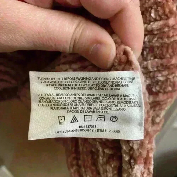 The sweater features a crew neck and pullover style, with a collarless design and soft accents. It's machine washable and easy to care for, ensuring that it will be a staple in your wardrobe for years to come. The sweater is available in size small and comes in a beautiful shade of pink.