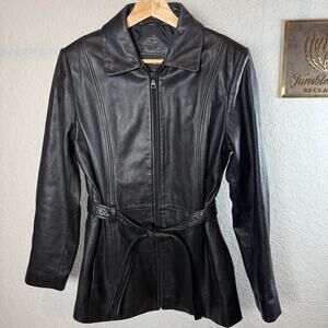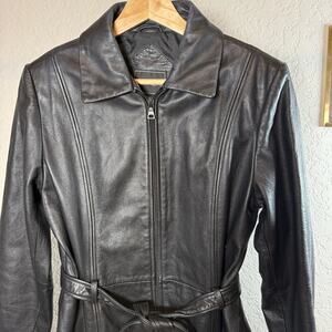 Women's Outbrook Black 100% Leather Zip Front Tie Waist Coat Size Small