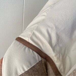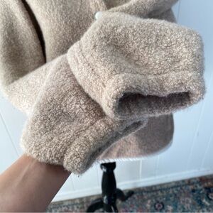 Women's Outdoor Voices MegaFleece Snap Up Hoodie Wool Blend Beige Sz S *stains