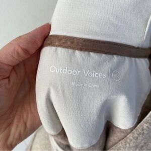 Elevate your wardrobe with this women's Outdoor Voices MegaFleece Snap Up Hoodie. The wool blend material is perfect for keeping you warm and cozy during the colder months. The beige and cream tan color and colorblock pattern add a touch of style to your outfit.