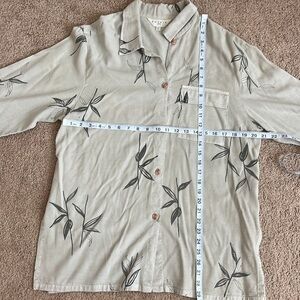 Women’s Outfit JPR Tan Leaf Design Button Down Long sleeve Shirt Size Large. Single front pocket. Pre-owned great condition. See pics for measurements and fabric content.
