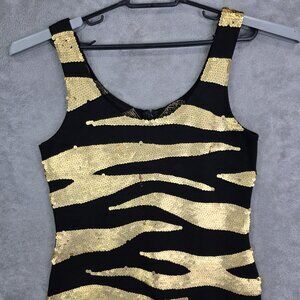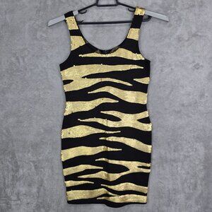 Womens Outlander Evening Gold & Black Sequin Zebra Print Bodycon Dress Size S
