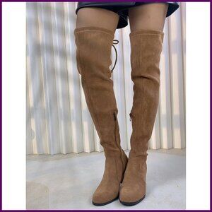 Women's Over Knee Boots Faux Suede Block Heel Lace Up Winter OTK