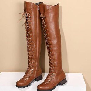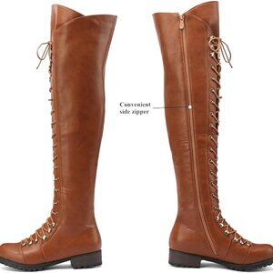 Women's Over The Knee Boots Square Toe Thigh High Boots with Side Zipper Lace Up