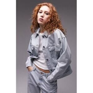 Women's TOPSHOP Oversize Denim Trucker Jacket - Gray - Denim jackets A slightly relaxed fit adds to the timelss casual appeal of this nonstretch-denim jacket. Spread collar 100% cotton Machine wash, line dry Made in Turkey.