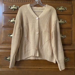 Womens Oversized Chunky Knit Cardigan Tan Button Front Neutral Fall Cardigan Size M