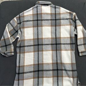Discover timeless elegance with this plaid trench coat. Featuring a classic gray and brown design, it's a versatile addition to any wardrobe.