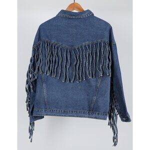 Women's Oversized Fringed Jacket Tassel Jean Jackets Cowgirl Western Denim Blue