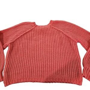 Womens Oversized Raglan Crew Neck Sweater Balloon Sleeve Bright Coral Size S. Great condition!