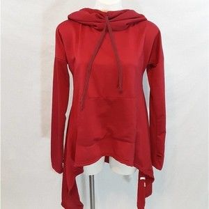 Liranmei Women’s Oversized Red Pullover Hoodie Sweater Small Asymmetrical Hem Casual Cozy