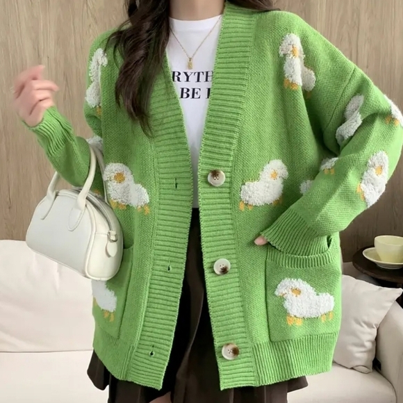 Womens Oversized Sheep Embriodered Cardigan. Size Small