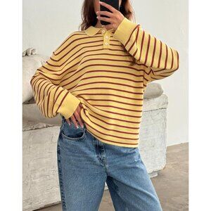 Women's Oversized Striped Knit Polo Sweater — Casual streetwear with vintage flair.