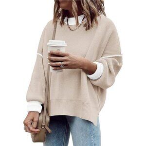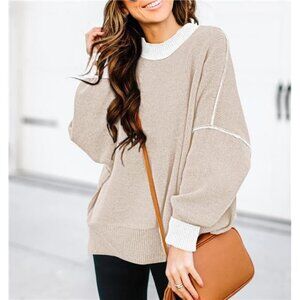 Womens Oversized Sweaters Batwing Sleeve Colorblock Knit Pullover Sweater Tops