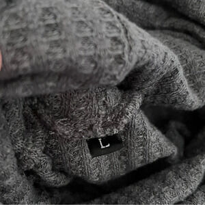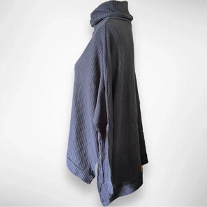 Women's Oversized Waffle Knit Batwing Turtleneck Gray Tunic Large | GUC