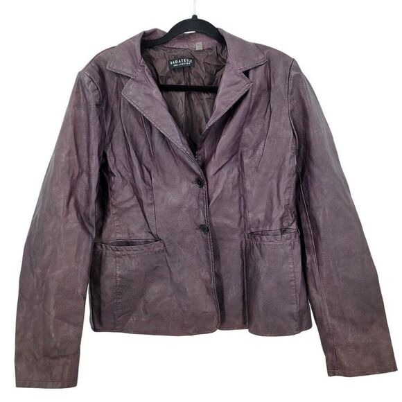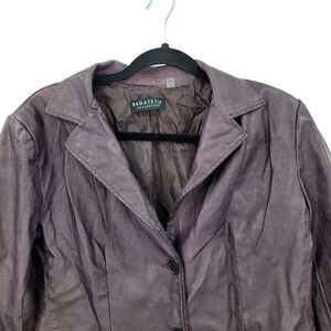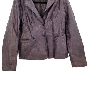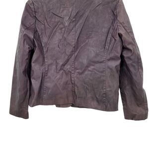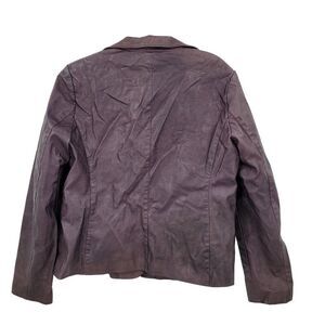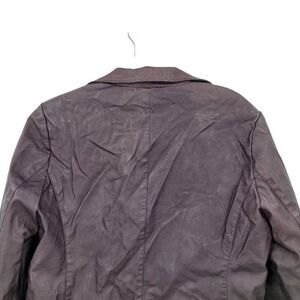 Womens Oxblood Vegan Faux Leather Jacket Sz L Eggplant Purple Blazer Button Up