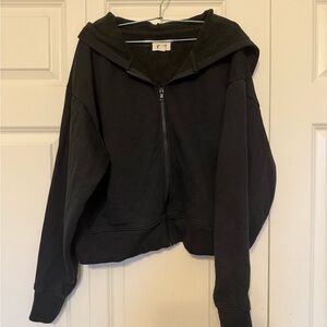 Womens PACT Organic Cotton Black Brushed Fleece Courtside Hoodie Size L