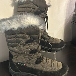 You are Looking at a Pair of Womens PAJAR-TEX Winter Snow Boots in a Size 7. Khaki green Quilted Upper with Black suede trim. Mid-Calf with lace up closure. Textured sole makes them suitable for outdoor activities or Casual Wear During the Winter Season.