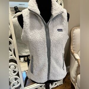 Women’s Patagonia Los Gatos Reversible Vest in grey. Size Medium. Great condition! Super soft! No stains or flaws! Regular fit, true to size. Normal wear for age. Neck tag missing- tag inside pocket intact. Measurements in photos. Smoke free home. Fast shipping!!
