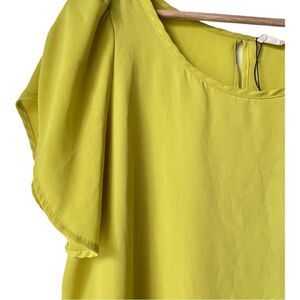 Women’s PEACHES Ń CREAM lime short sleeve yellow blouse plaid casual size L.