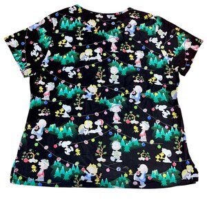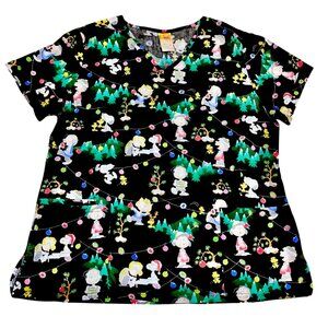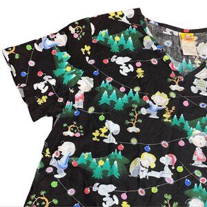 Womens PEANUTS Snoopy Charlie Brown Linus Lucy Scrub Top Large Christmas Winter