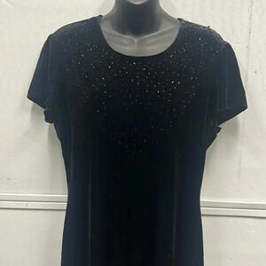 Women’s P.J. Klein Black Velvet Beaded Dress Size 12 EUC